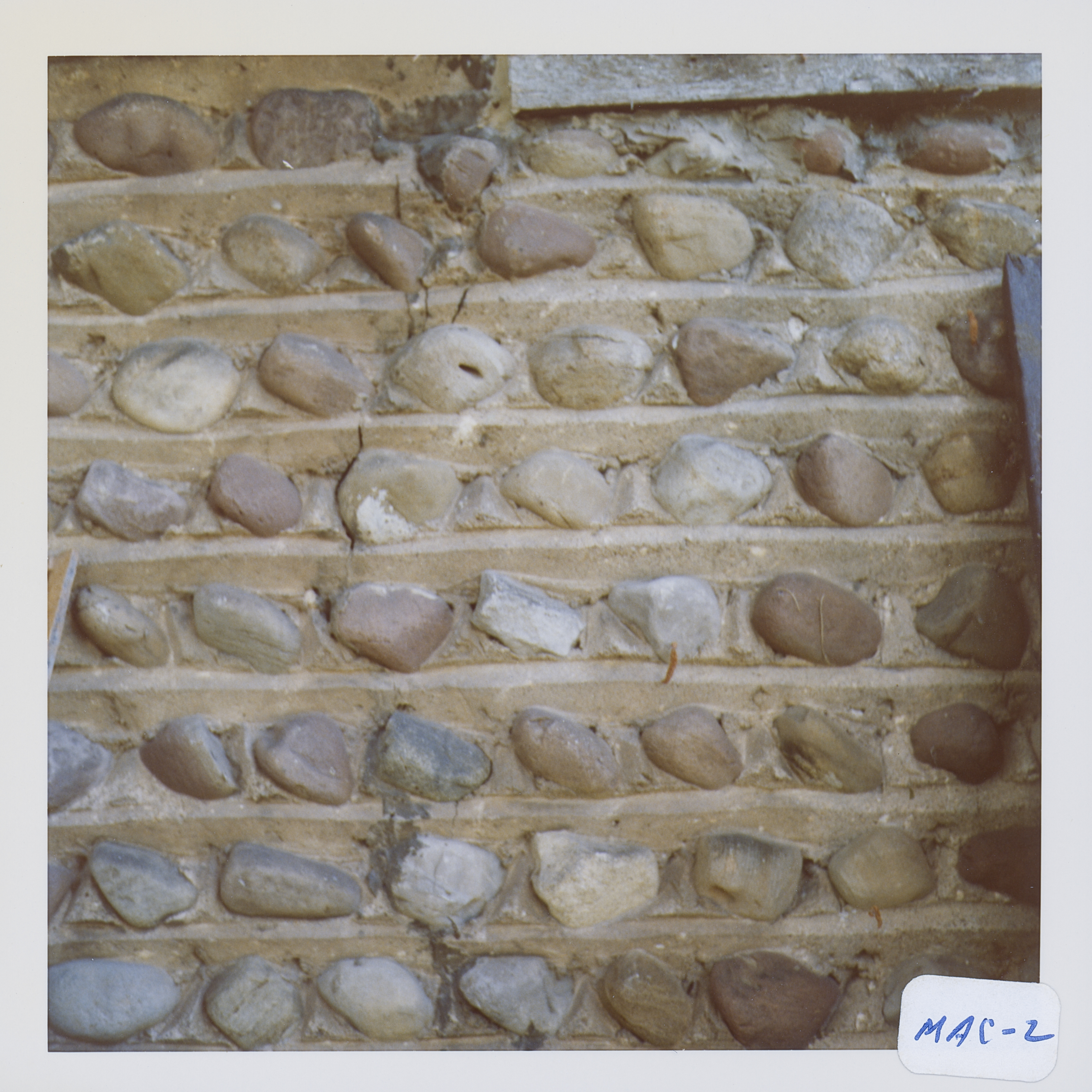 Mortar application and content: Vertical heavy. Vertical pyramids. Horizontal mortar is v-shaped, and the verticals are mostly raised, with pyramids cut off at the bottom.
