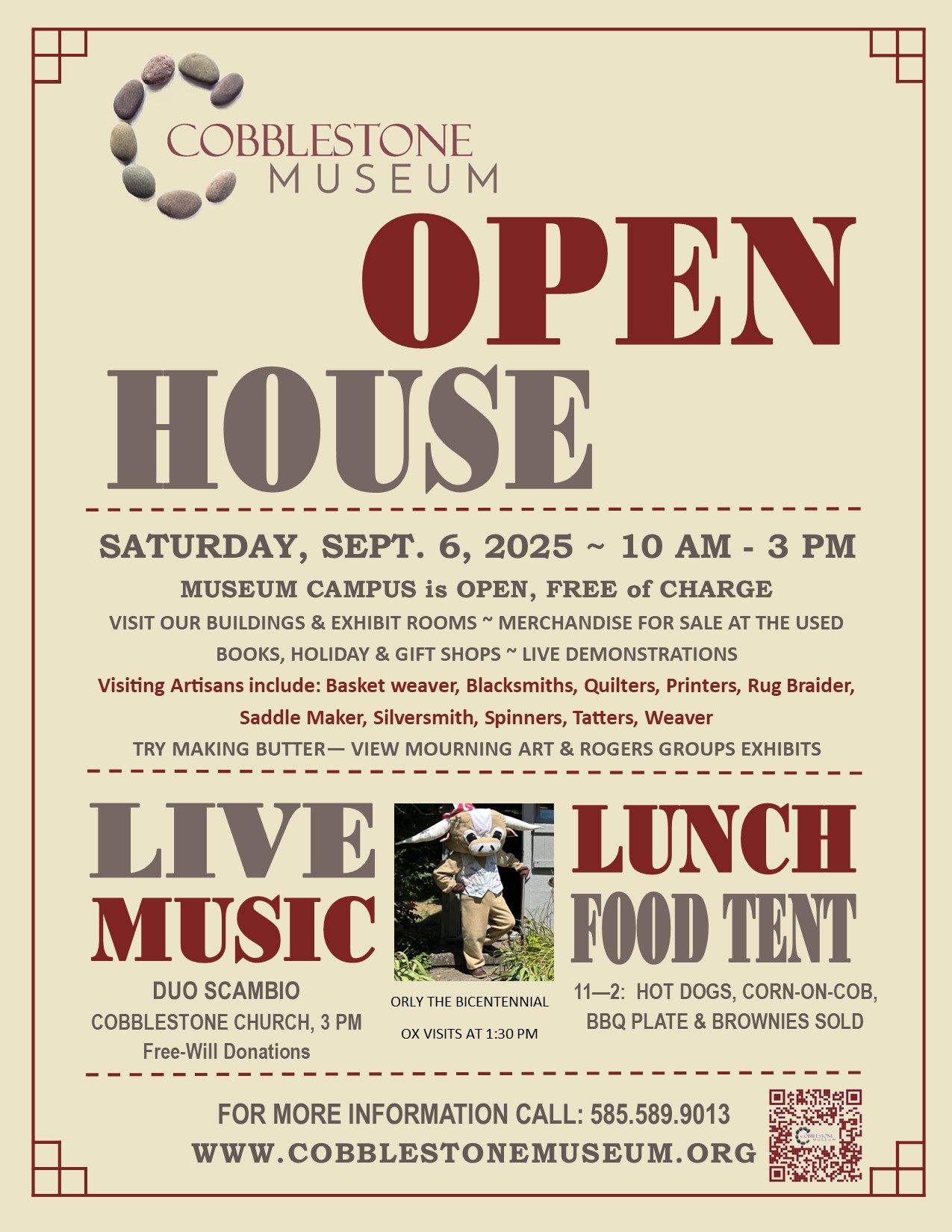 Limited Fall Hours. Tours by Appointment Call 585-589-9013